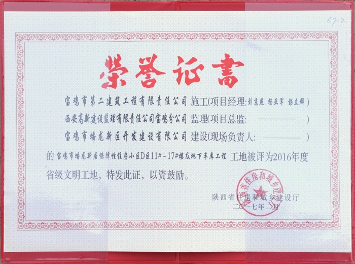 2017年度省級(jí)文明工地(寶雞文化藝術(shù)中心)