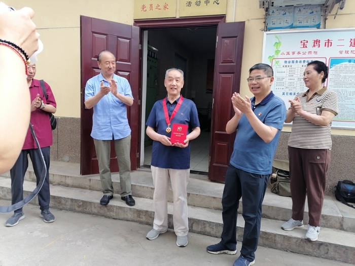 黨委副書記沈為民為退休黨員王體澤同志頒發(fā)“光榮在黨50年”紀念章。