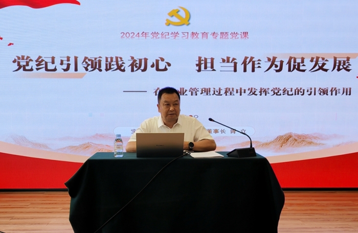黨委書記、董事長胥立講授題為《黨紀引領踐初心 擔當作為促發(fā)展》的黨紀學習教育專題黨課。他從認識黨紀的重要性、深學細悟“六項紀律”、加強黨紀建設的要求、在管理中貫徹黨紀的思考和實踐四個方面進行了講解,并與現場人員進行了互動交流。