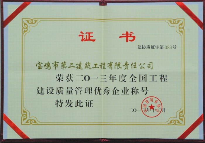 2013年全國(guó)工程建設(shè)質(zhì)量管理優(yōu)秀企業(yè)