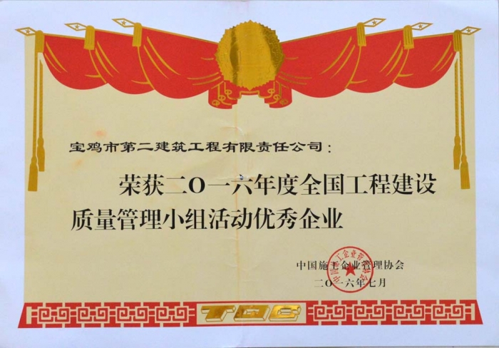2016年度全國工程建設質(zhì)量管理小組活動優(yōu)秀企業(yè)