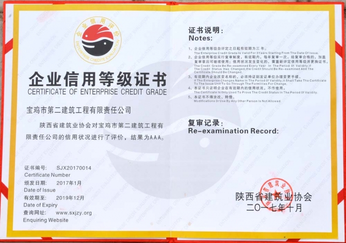 2017年陜西省AAA級(jí)信用企業(yè)
